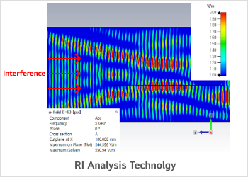 - Early resolution and establishment of direction for electromagnetic wave issues: early stage fix of product specifications (devices, PCB) and design