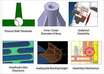Automatic verification system for mold and assembly problem areas when
